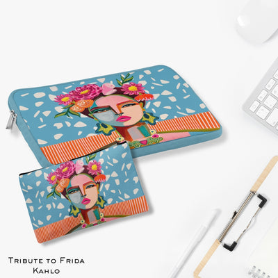 "Tribute To Frida Kahlo" Canvas Laptop Sleeve With Pouch